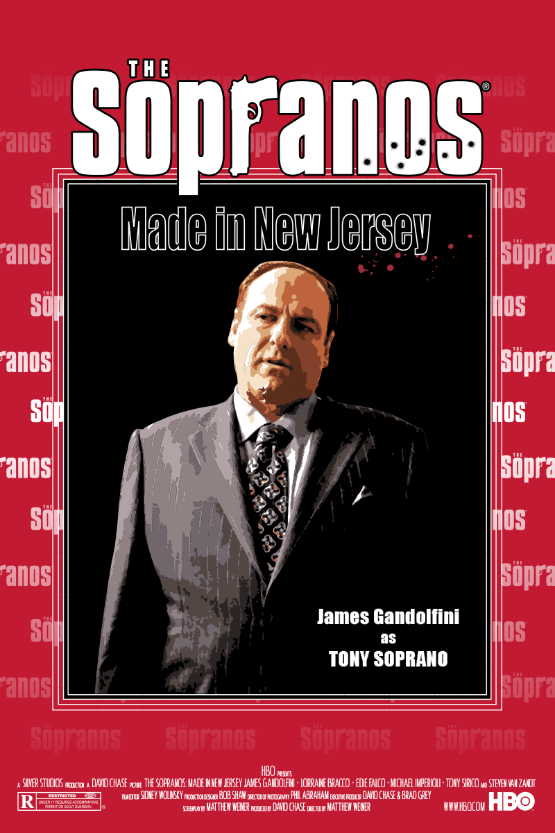 If The Sopranos ever made a movie with James Gandolfini, I'd imagine the graphic poster would look neat like this. I took a photo and ran with it trying to make everything look vectorized. I used the cast and crew credits from the show, and translated them into what I think would be their position in the making of the movie at the bottom of the poster. I was overall trying to make him seem a little scary while adding vector elements to the title.